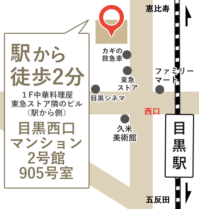 | 所在地 | 〒141-0021 東京都品川区上大崎2丁目24-11 目黒西口マンション2号館 905号室 (駅から徒歩2分) |